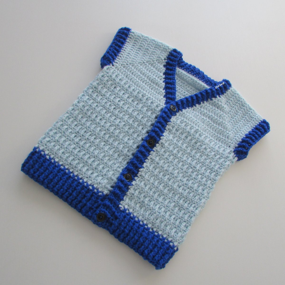 Háčkovaný svetřík, vesta na zapínání, výstřih do "V",