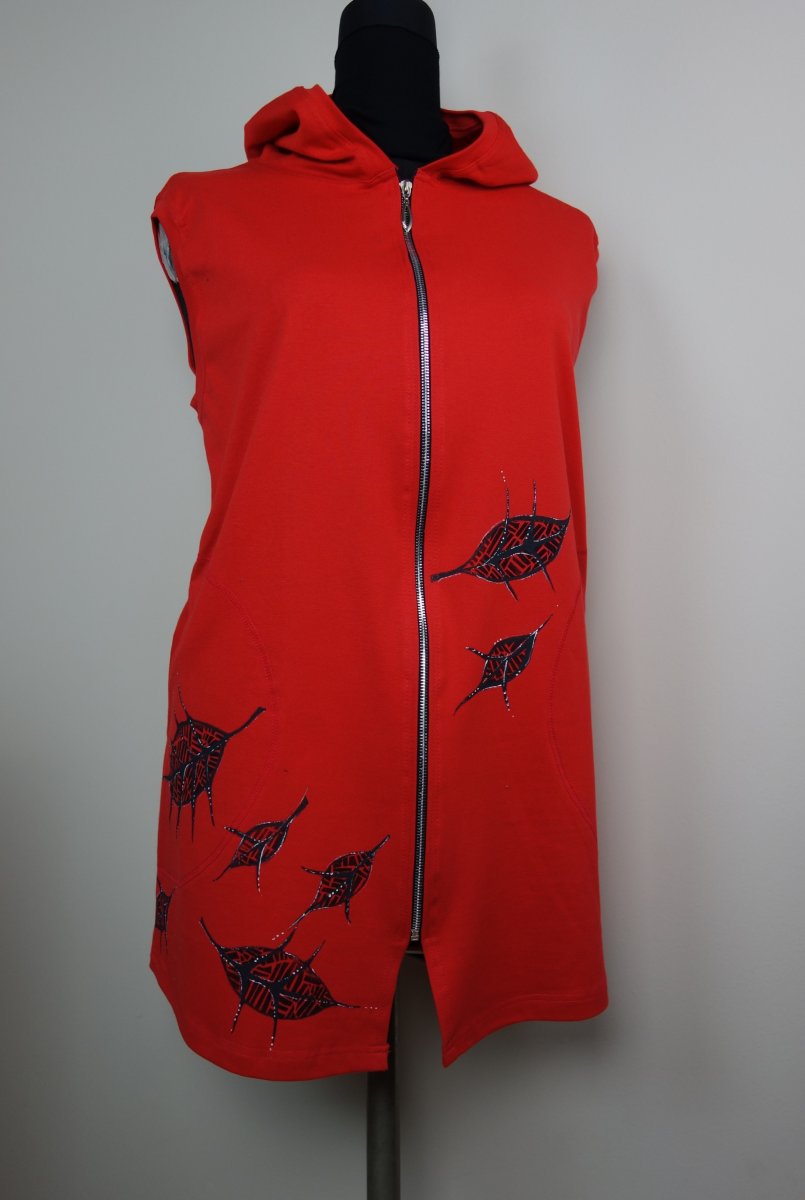 Tenčí vesta na zip je zdobena ruční malůvkou listí....