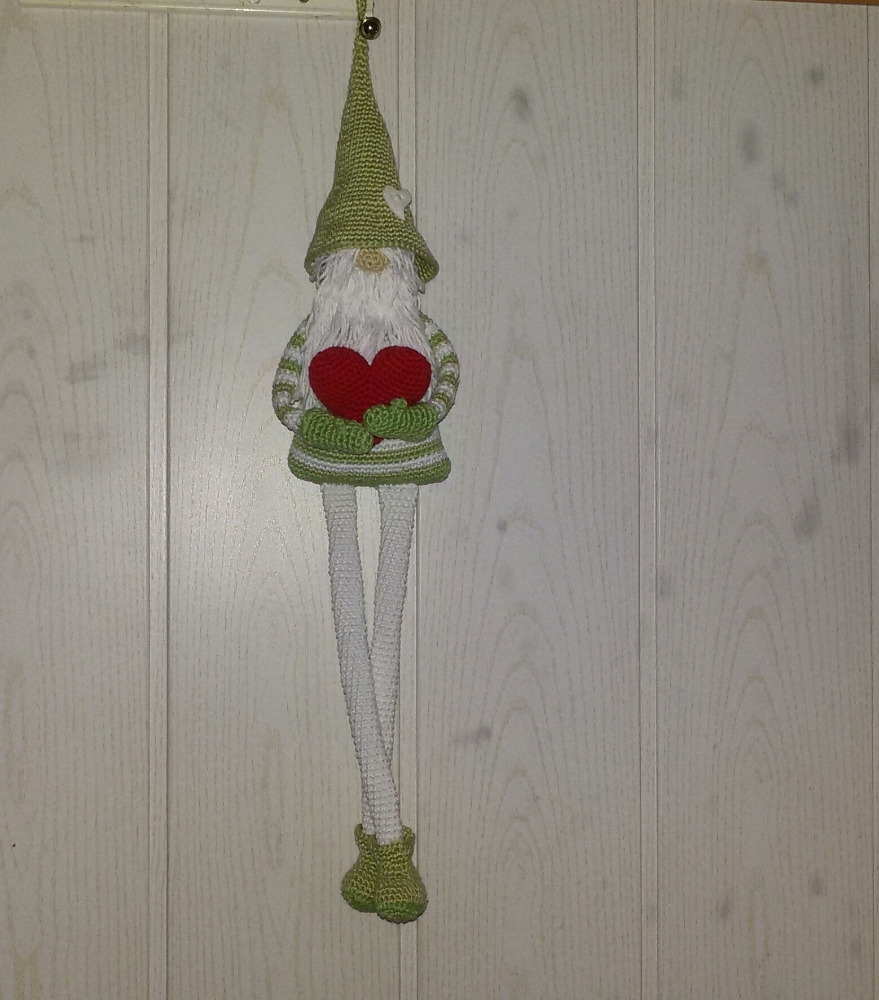Jsem háčkovaný ze 100% bavlny, ozdobený fimo knoflíkemy a rolničkou. Vyrostl jsem do výšky 45 cm, vyplněný jsem dutým vláknem a vánoční náladou. Můžeš si mne i umýt do 40°C.