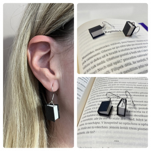 Pro milovníky čtení a knih jsme si připravili visací náušnice s motivem knihy. Háček z nerez oceli. Rozměry cca 15mm, materiál PLA - biologicky odbouratelný.
