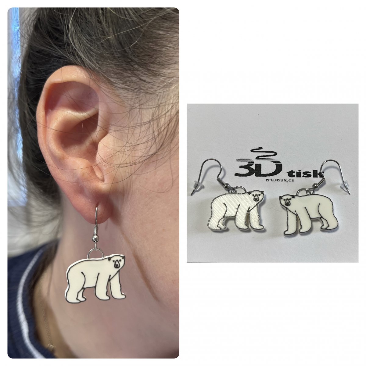 Visací náušnice ve tvaru ledního medvěda. Háček z nerez oceli. Rozměry cca 23x17mm. Materiál PLA - biologicky odbouratelný.