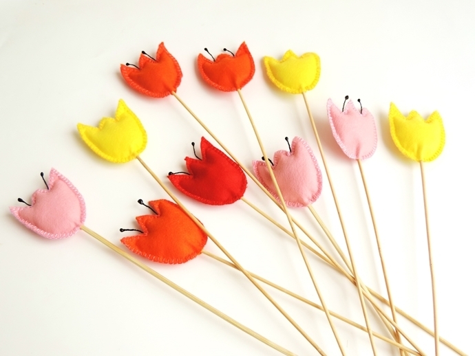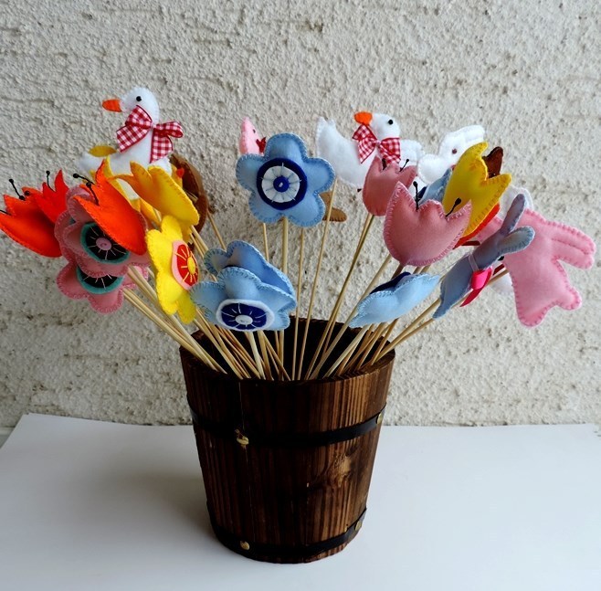 Každá kytička je originál a je zhotovená ručním šitím z filcu a pestíků.