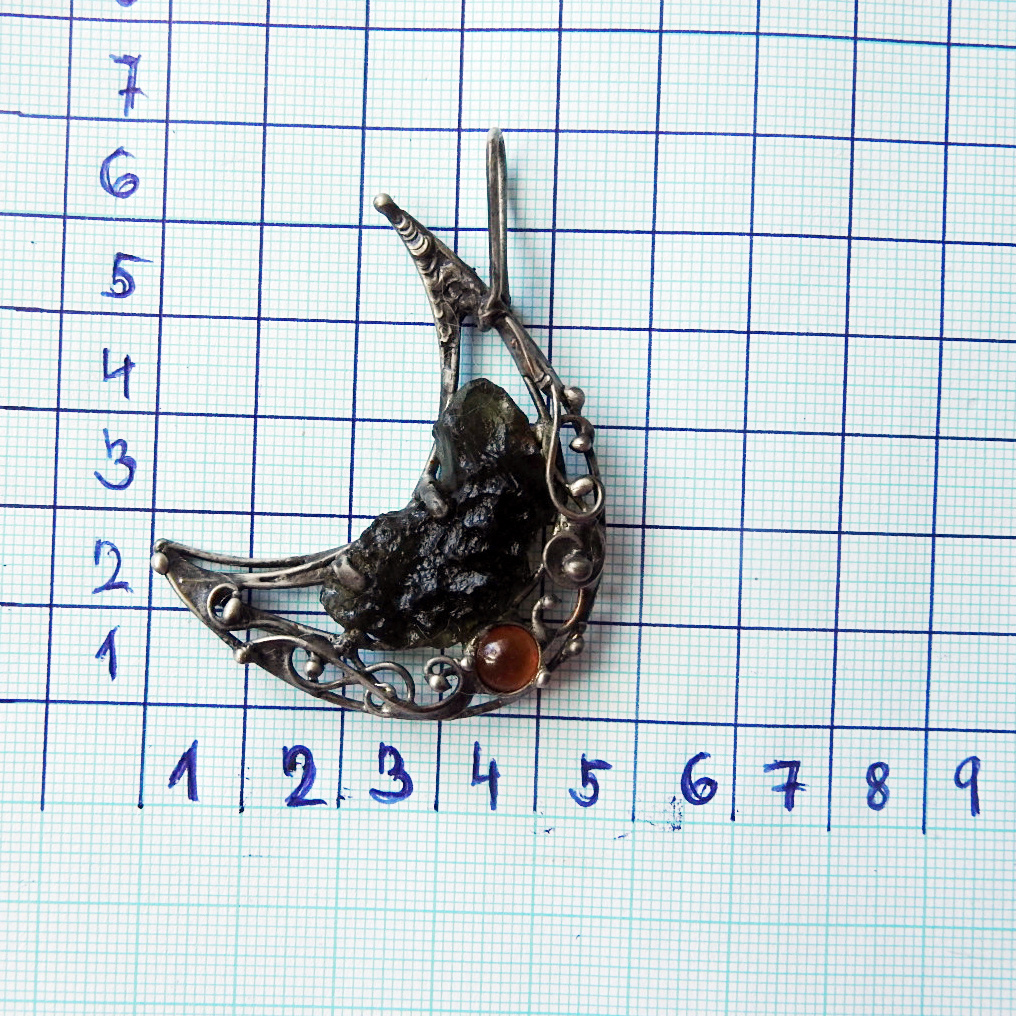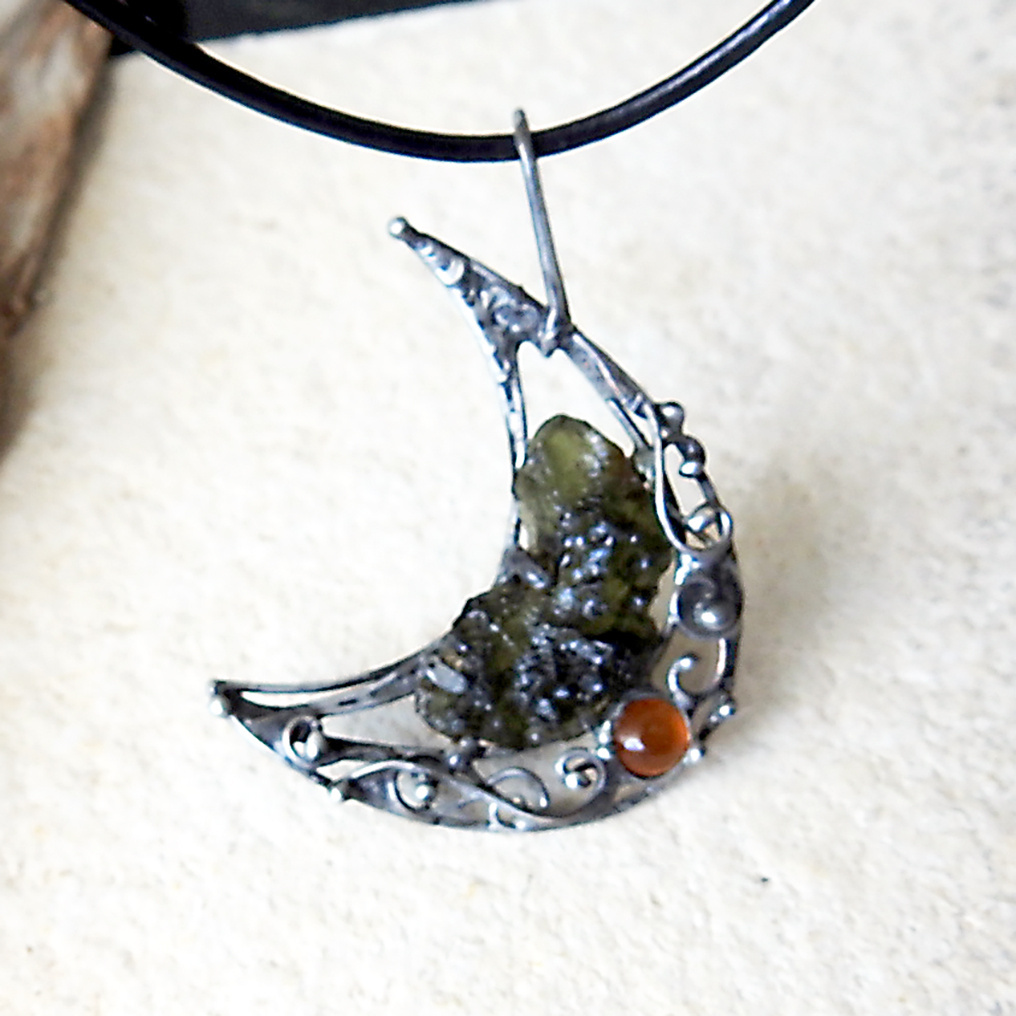 Cínovaný náhrdelník s vltavínem a spessartinem.
