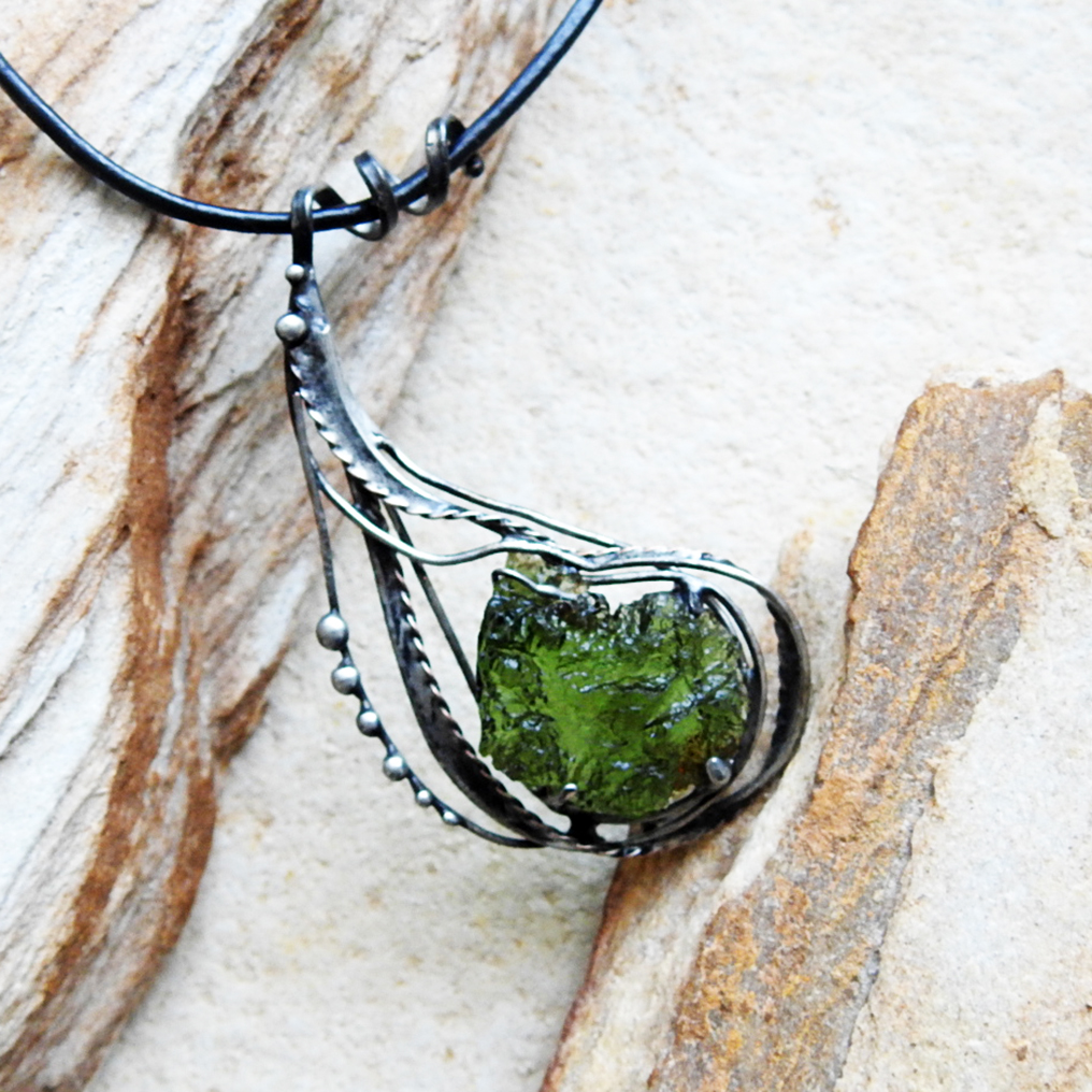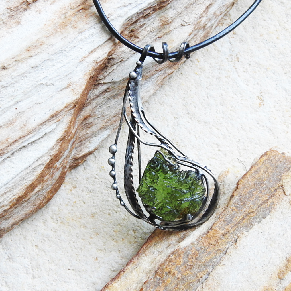 Cínovaný náhrdelník s vltavínem.