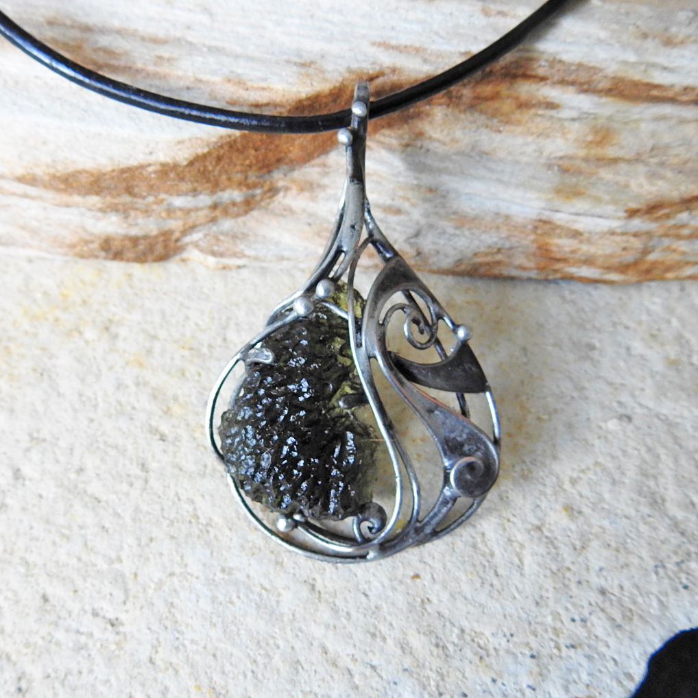 Cínovaný náhrdelník s vltavínem.
