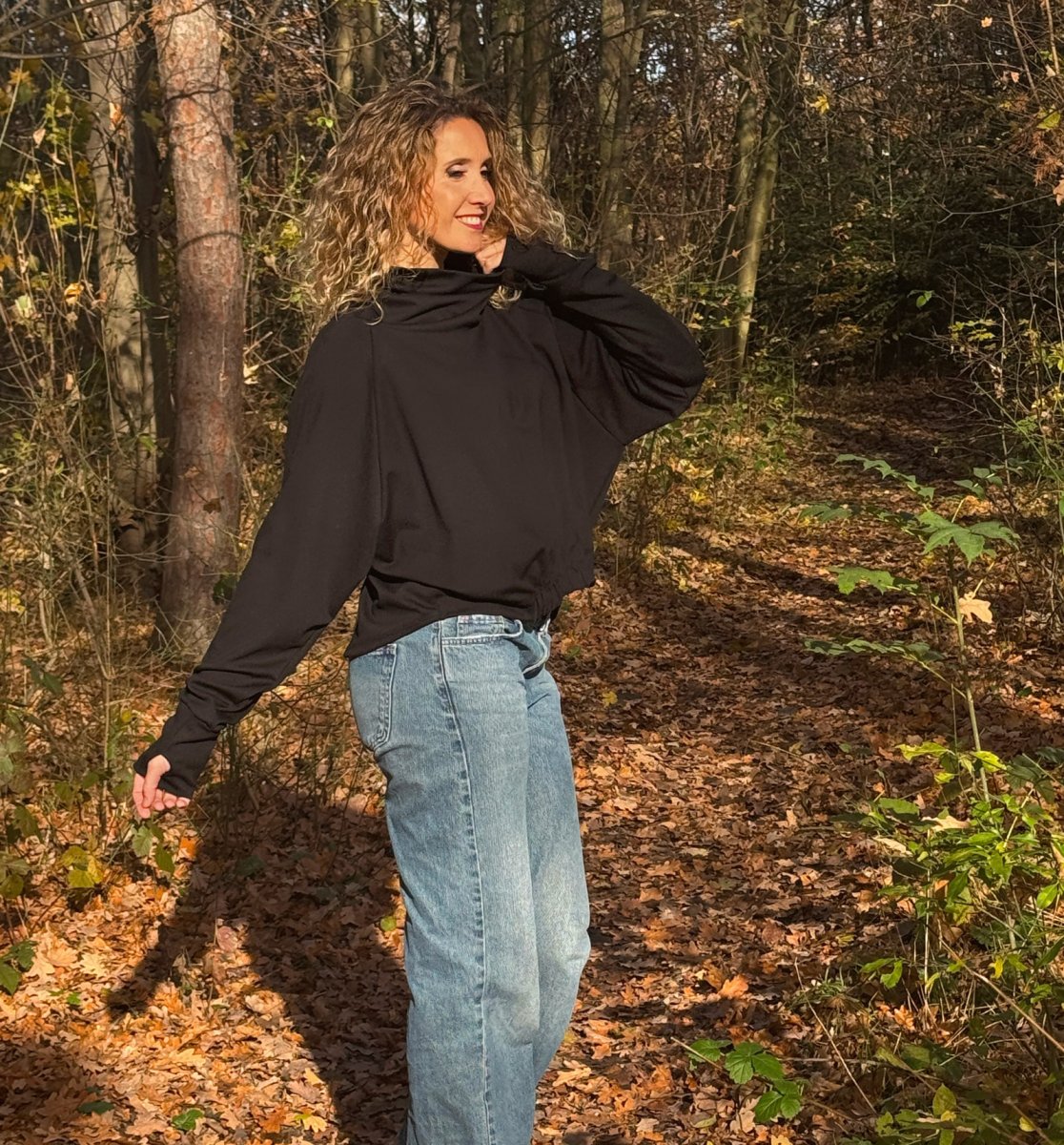 Volný rolák je ušitý ze směsového úpletu (68%vis/28%pes/4%ela).