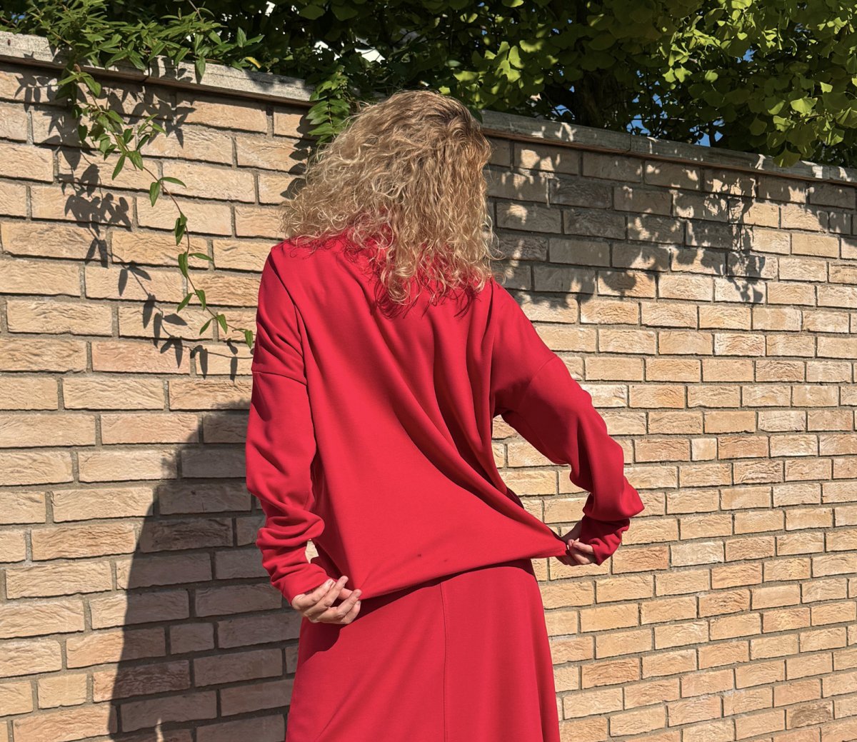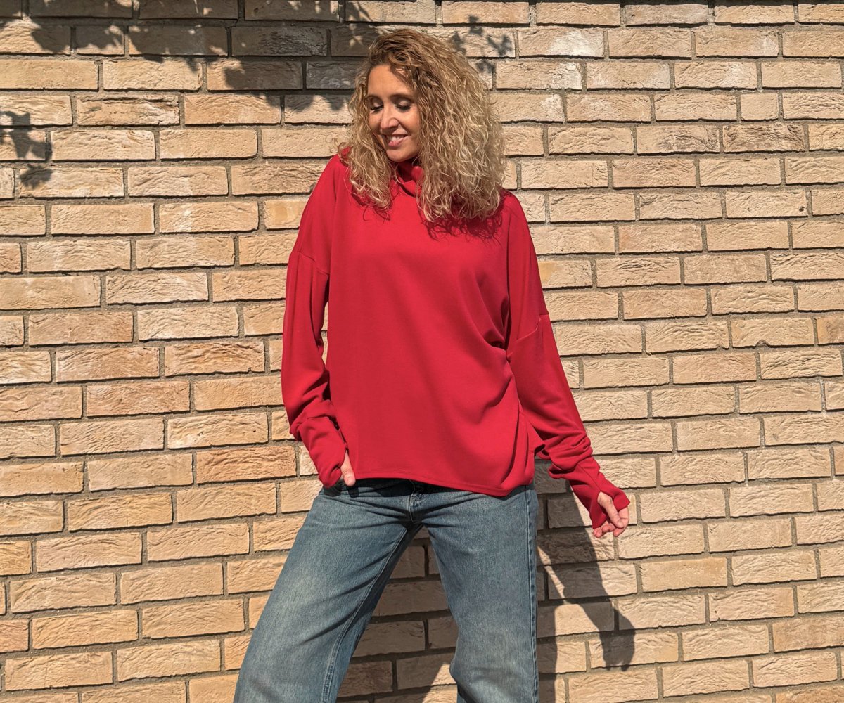 Volný rolák je ušitý ze směsového úpletu (68%vis/28%pes/4%ela).