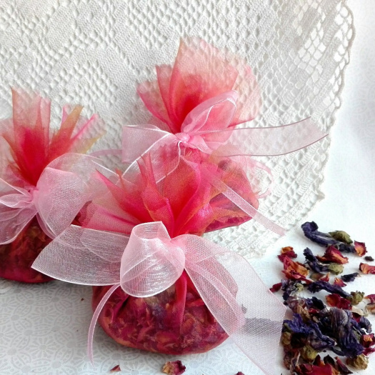 Organzové mošničky jsou plněné cca 8g kvalitního sušeného květu růže a slézu a naliníku, zdobené růžovou mašličkou...