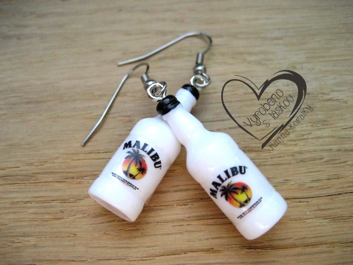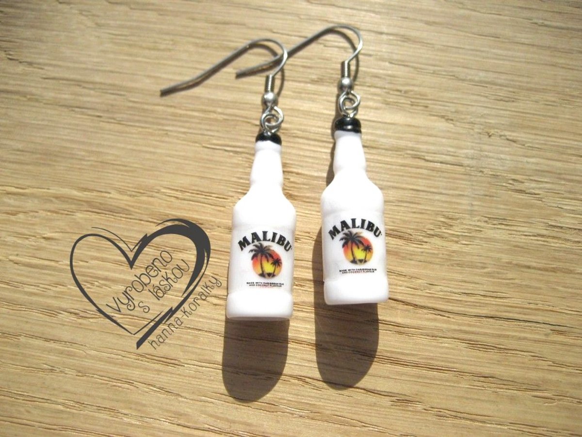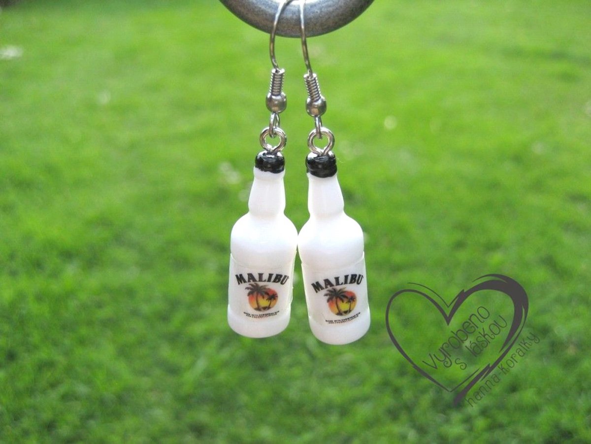 Vtipné náušnice z pryskyřice - mini bílá láhev akohol - likér - výška motivu 3,1 cm + náušnicový háček z nerez oceli