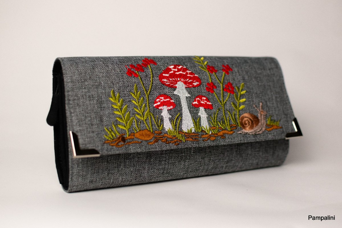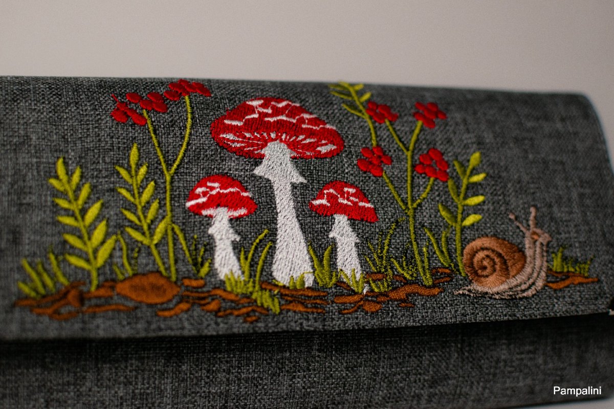 Velká peněženka ušitá z odolné kočárkoviny se strojní výšivkou.  Pevně vyztužená a opatřená kovovými rohy.