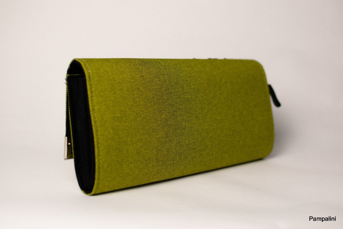 Velká peněženka ušitá z odolné kočárkoviny se strojní výšivkou. Pevně vyztužená a opatřená kovovými rohy.
