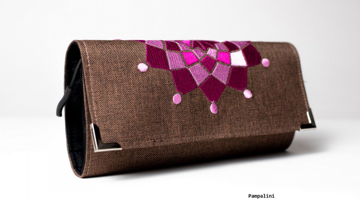 Vyšívaná peněženka - Růžová mandala na hnědé