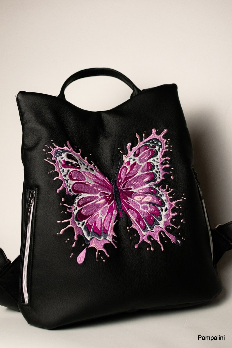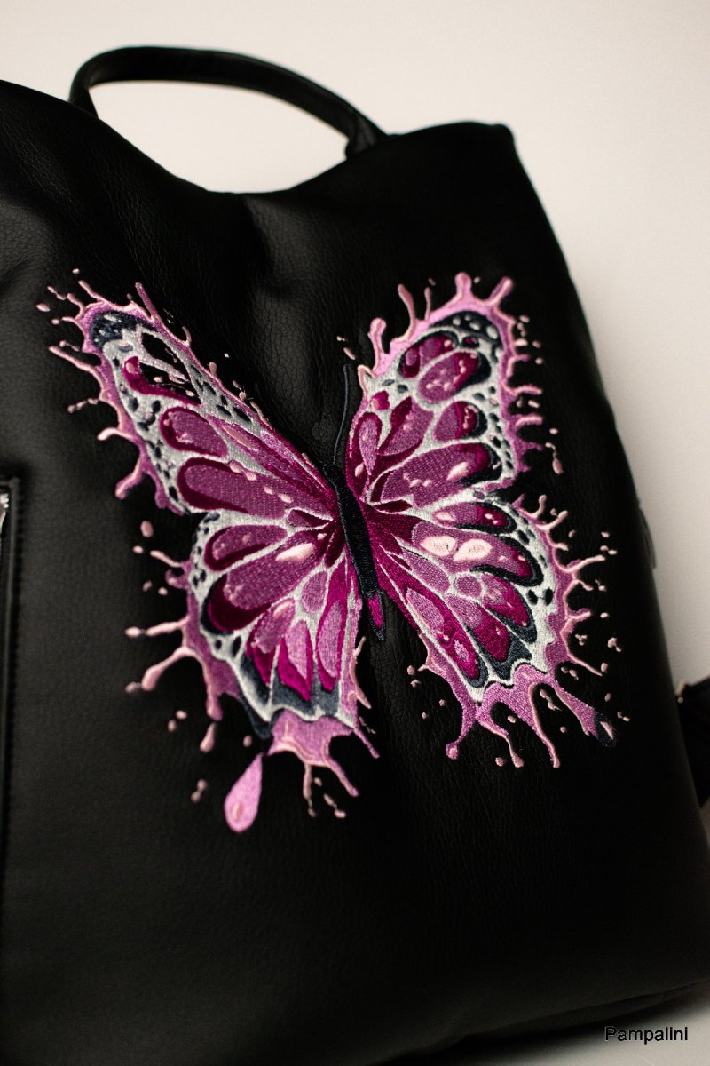 Ušitý z kvalitní koženky opatřený strojní výšivkou.
