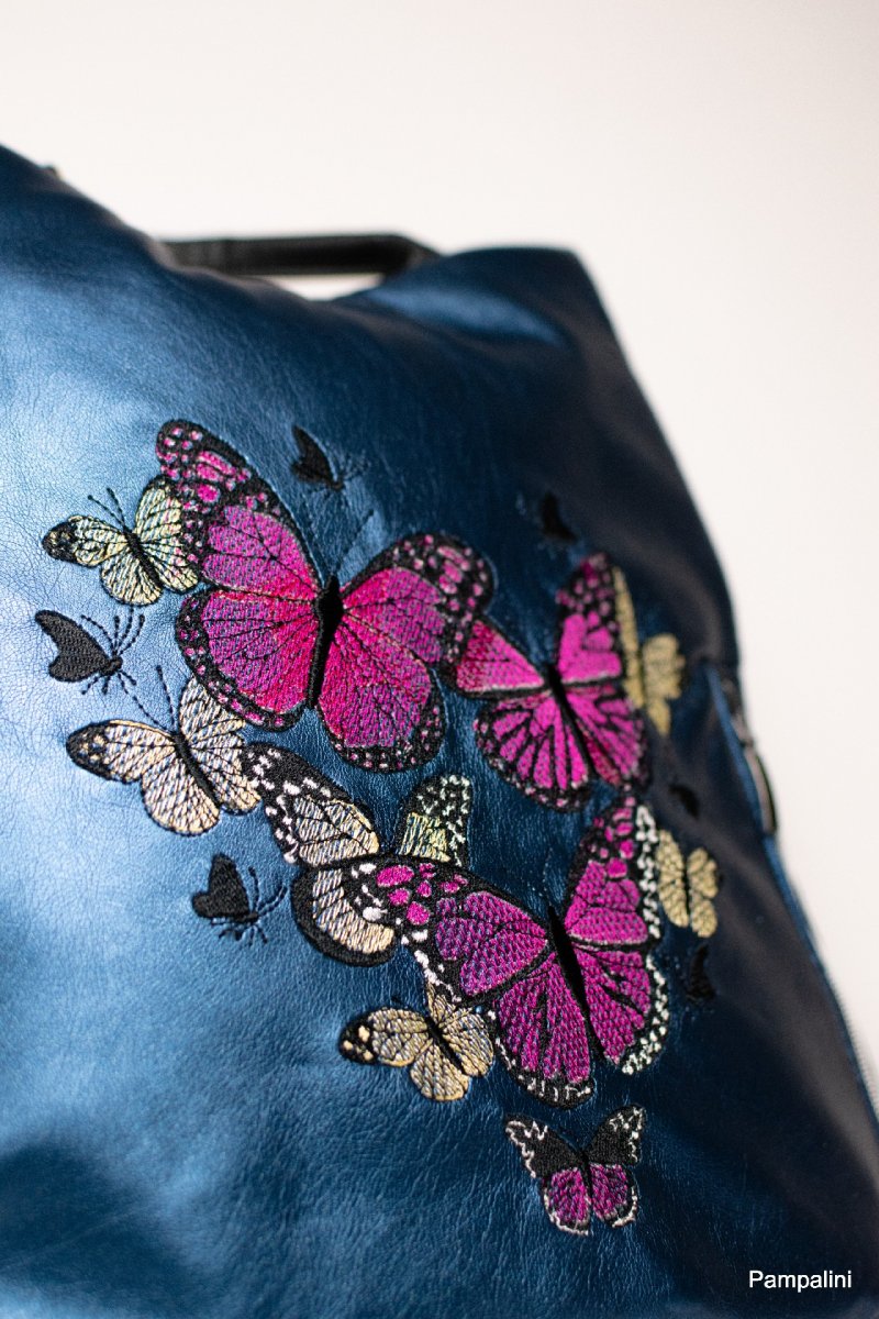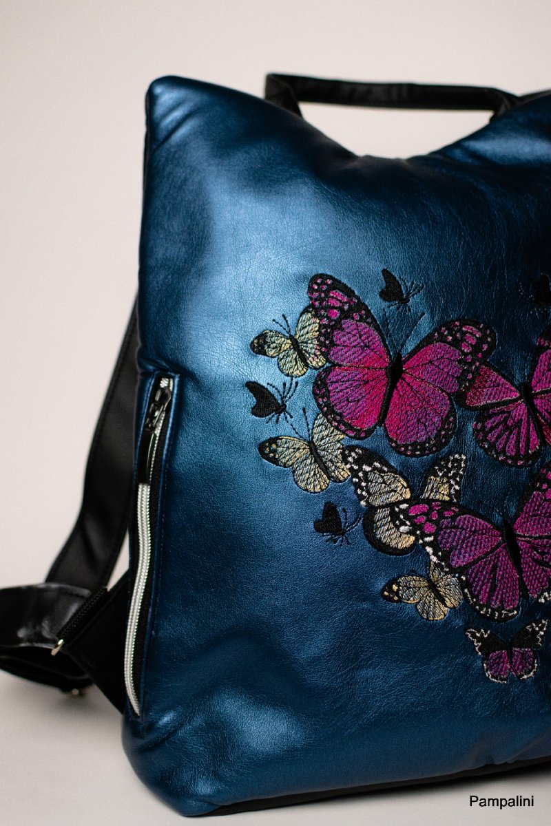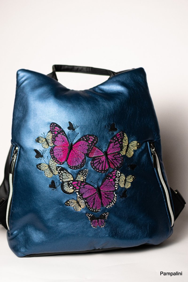 Ušitý z kvalitní koženky opatřený strojní výšivkou.