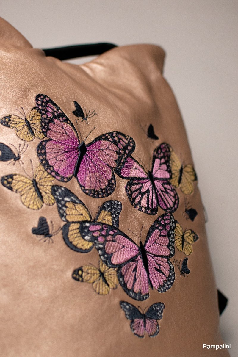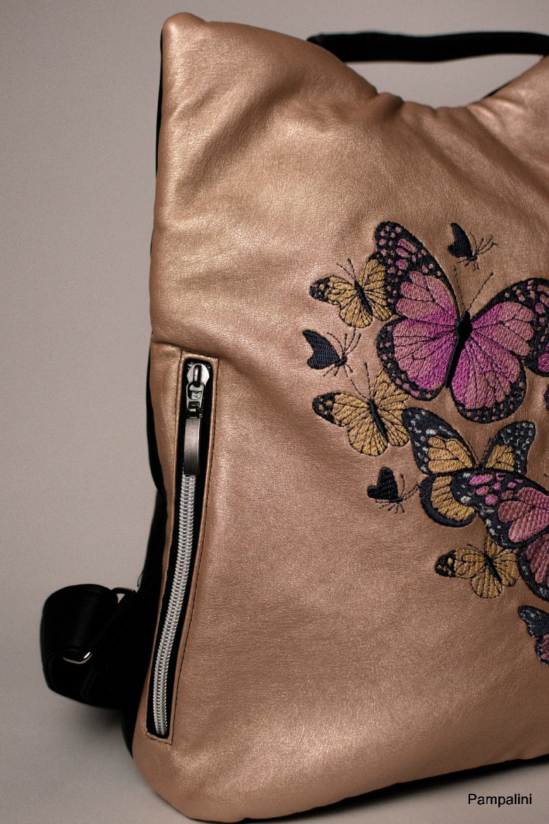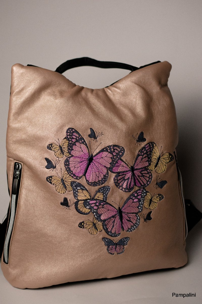Ušitý z kvalitní koženky opatřený strojní výšivkou.