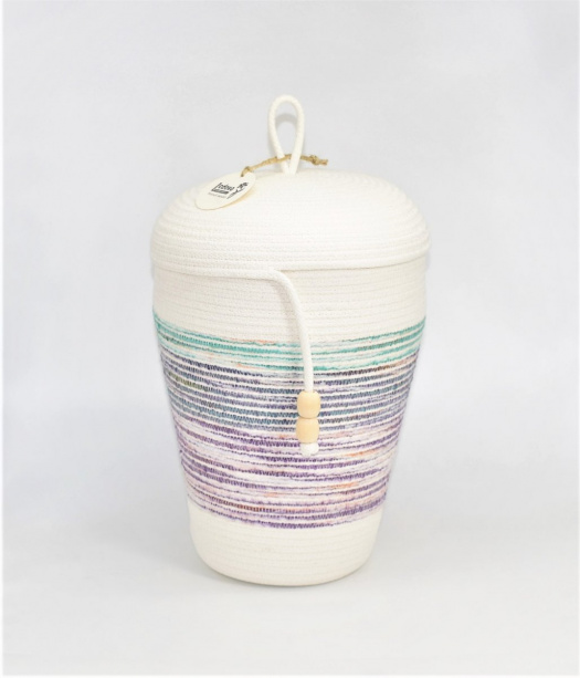 Vysoký úložný koš z bavlněných provazů v barvě slonové kosti s vnějším barevným proužkem