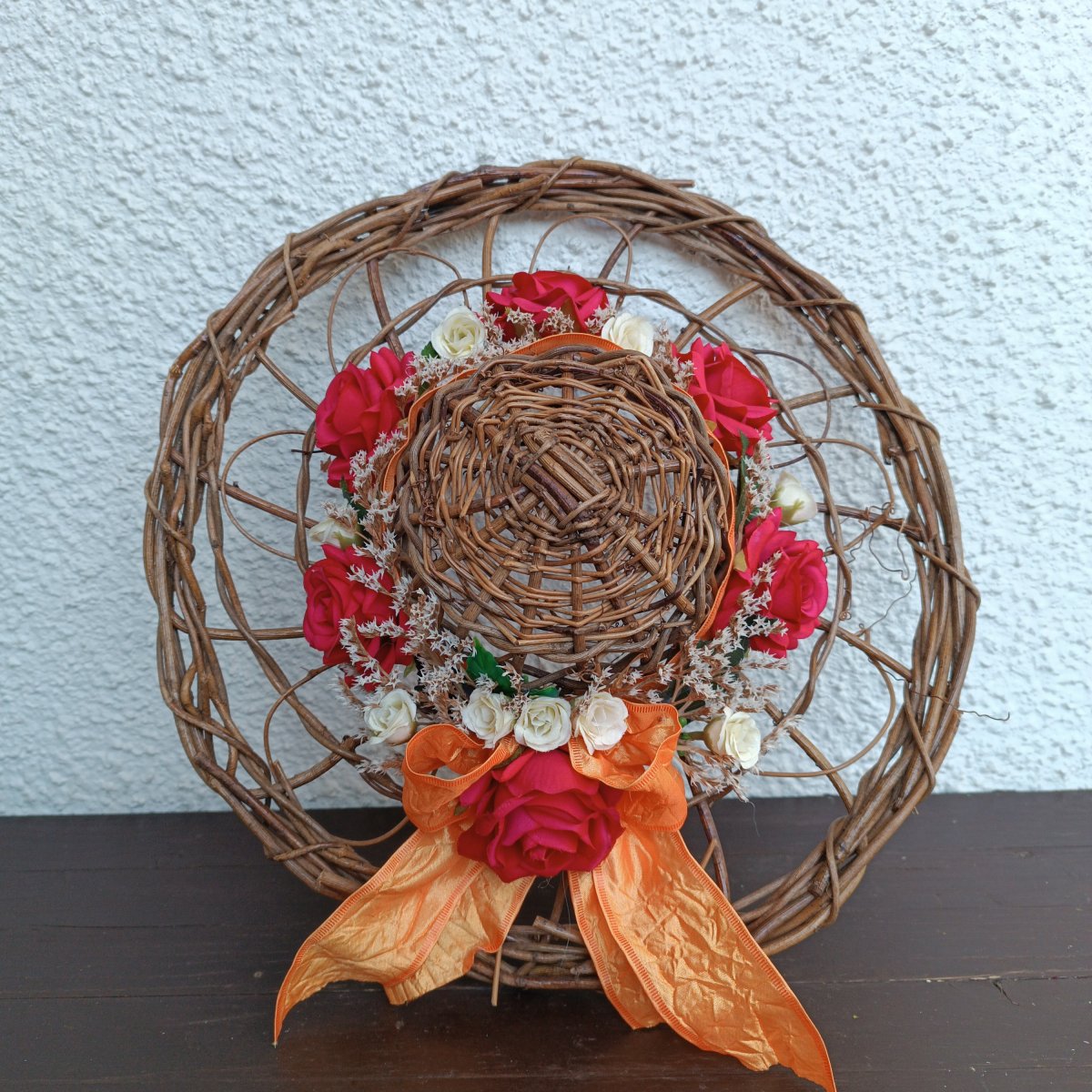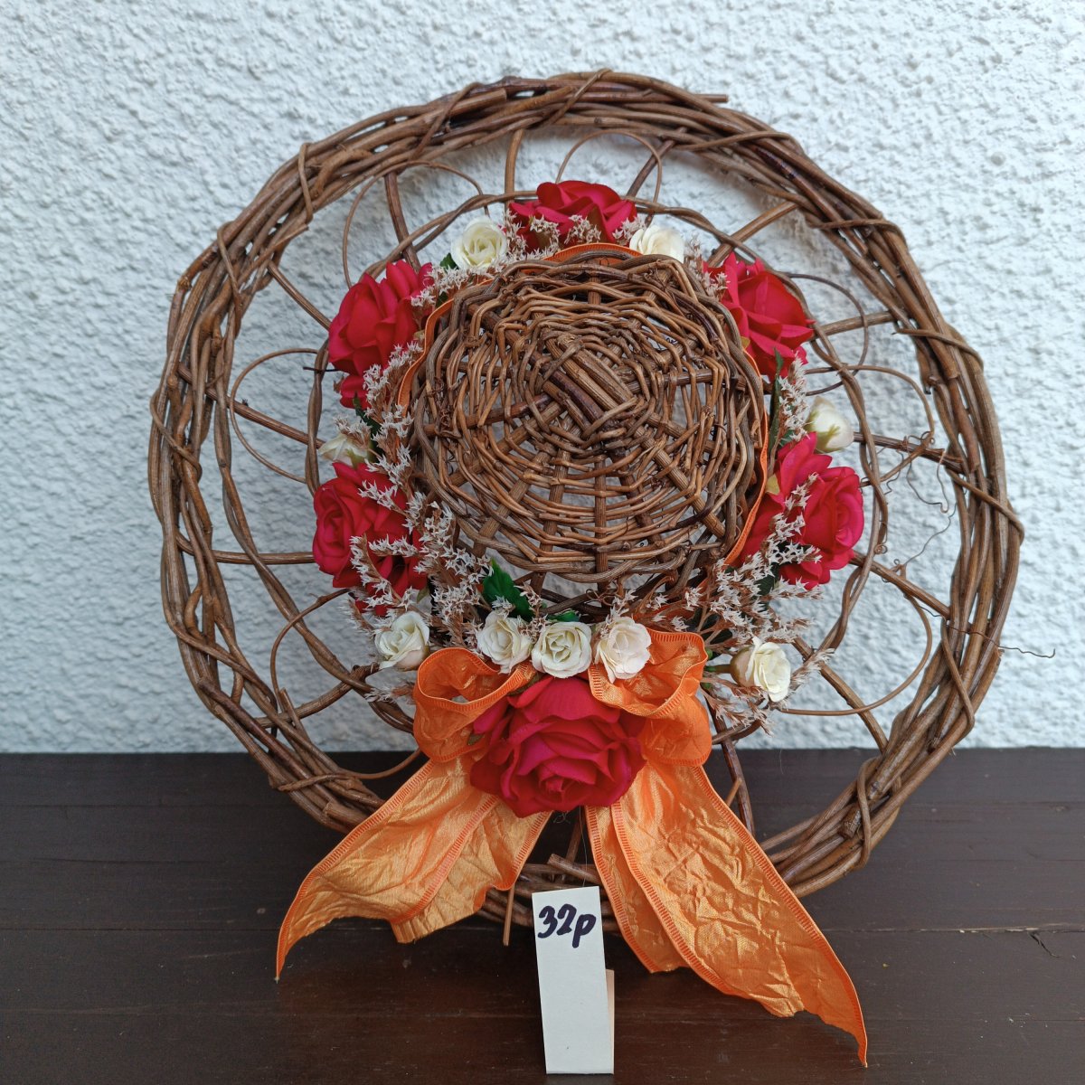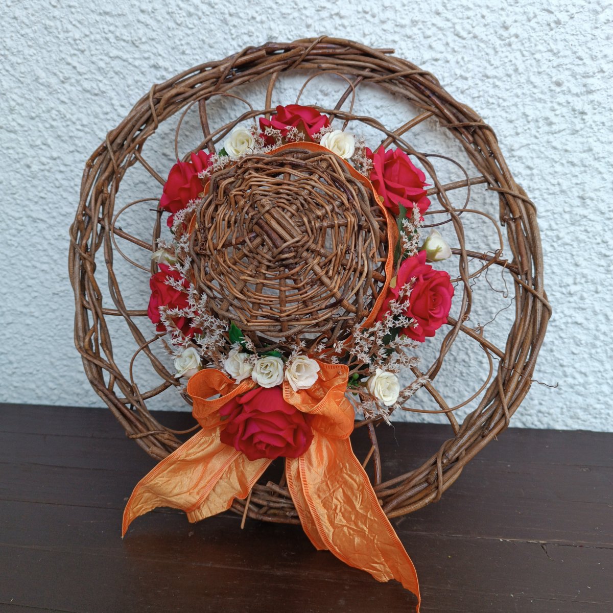 Aranžmá na hezkém proutěném klobouku o průměru - 35cm,které bude připomínat hezké letní dny:-)