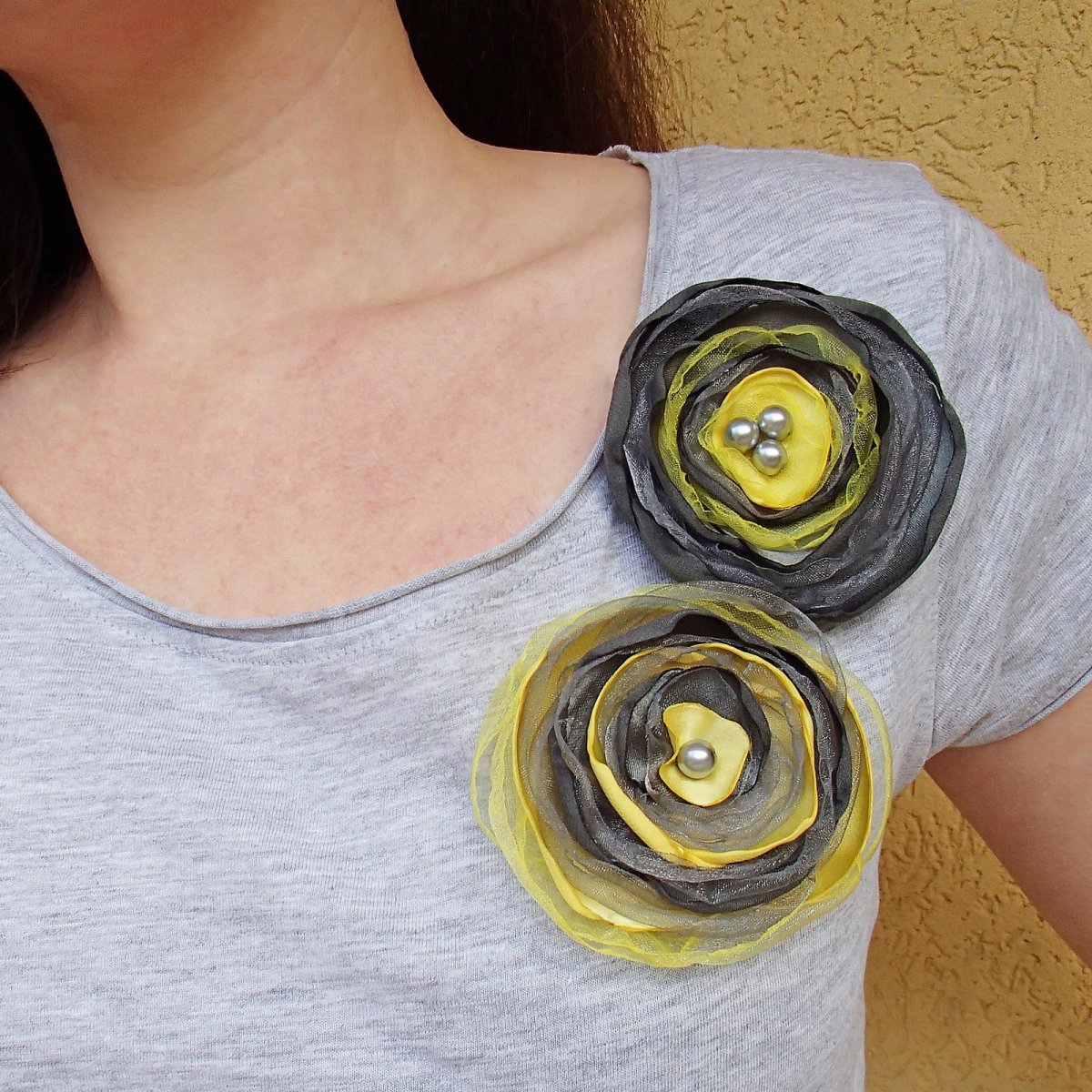 Oživte Váš outfit květem z organzy a saténu, jehož střed zdobí perlička.