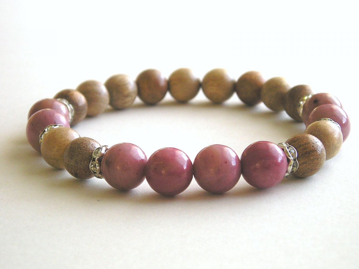 Náramek je vyroben z přírodních korálků z rodonitu.