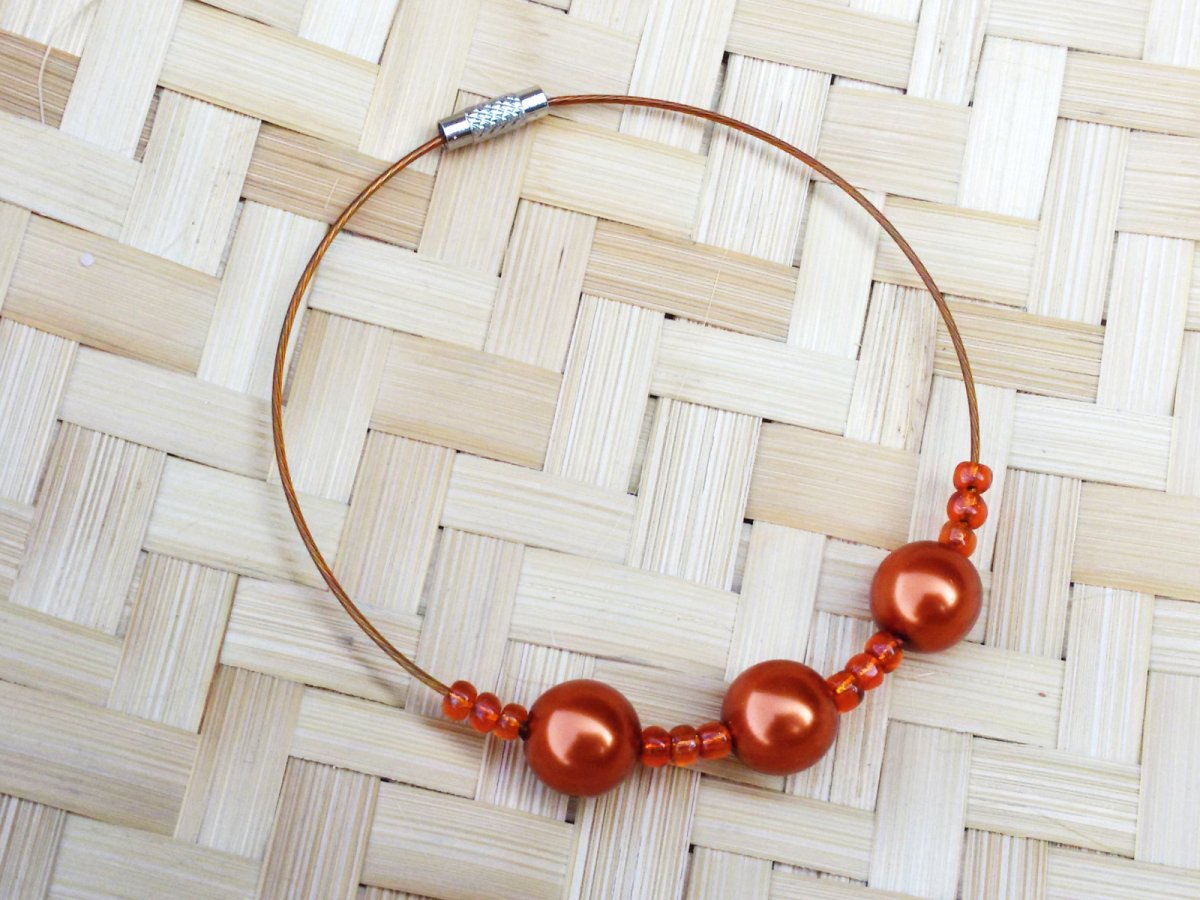Náramek zdobí oranžovo zlaté korálky,které jsou doplněné drobnými skleněnými korálkami v oranžové barvě.