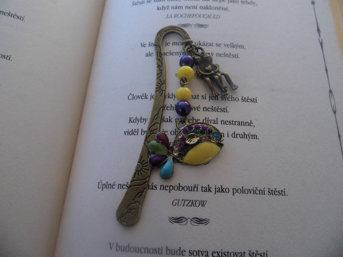 záložka do knihy 81mm, bronzová barva,korálky,přívěsky....