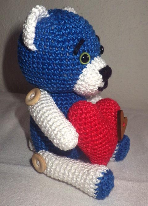 Medvídek vyrostl do výšky cca 17 cm i s ušima, v sedě cca 12 cm. Je háčkovaný bavlněnou přízí a vyplněný PES kuličkami (antialergenním dutým vláknem). Medvídek je opatřen bezpečnostními očičky. Ruce a nohy má přišité knoflíky, aby s nimi mohl pohybovat.