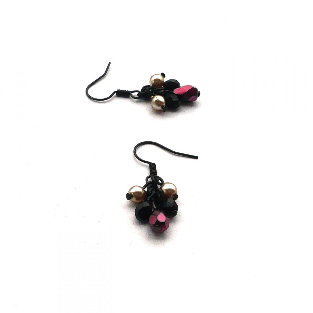 Náušnice tvoří jemný hrozínek, uspořádaný z broušených skleněných korálků a voskovaných perliček.