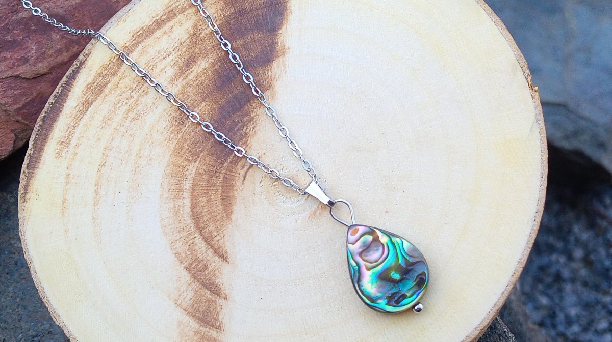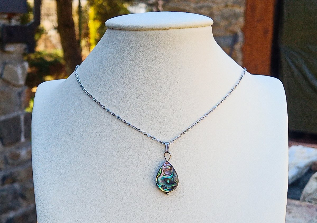 Ozdobte svůj dekolt fascinující hrou barev, kterou dokáže vytvořit jen sama příroda. Tento minimalistický, a přesto nepřehlédnutelný náhrdelník nese dominantní kapku pravé perleti z mušle Abalone, která vyniká svými magickými duhovými odlesky, protkanými smaragdovou, růžovou, tyrkysovou a modrou barvou.