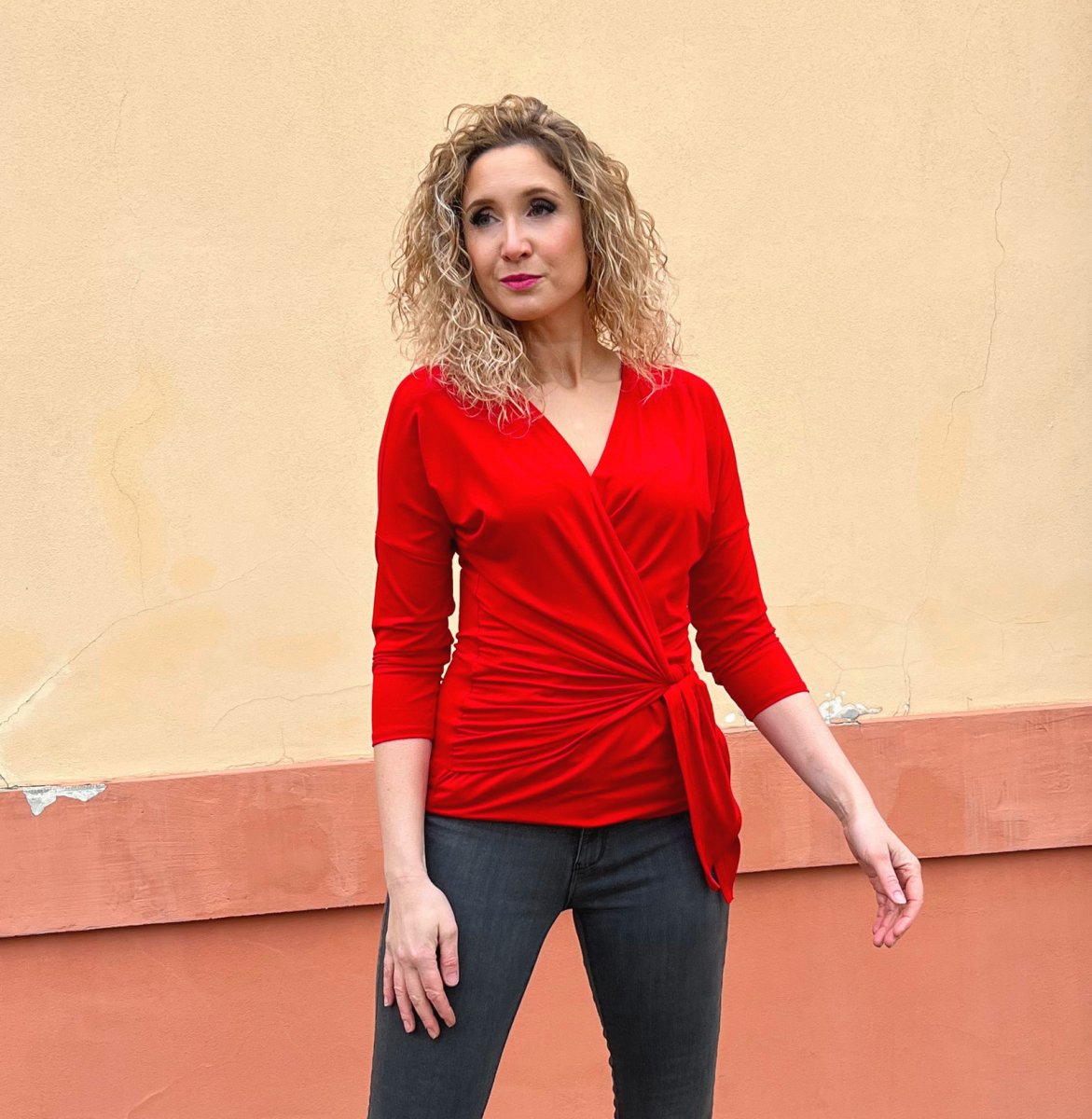 Tunika s volnými rukávy a zavázáním v pase z úpletu viskóza/elastan.