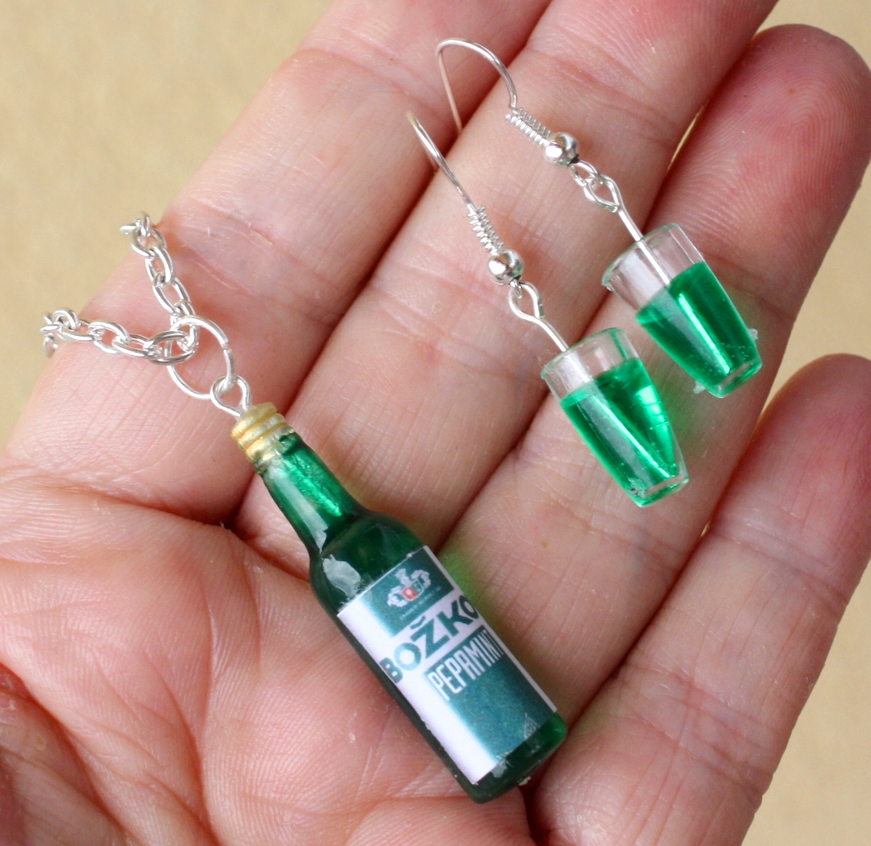 plněno křišťálovou pryskyřicí, skleničky umělohmotné, náušničky jsou velmi lehounké :-)