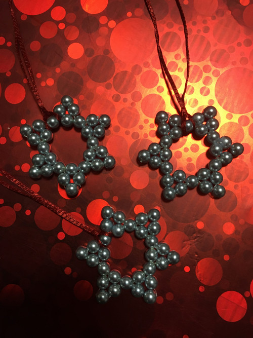 k prodeji 3 ks malých perličkových hvězdiček, vloček, jsou k dozdobení stromečku, balíčků, stolu, k nalepení a tak podobně. nejsou vhodné k našívání a praní v pračce. průměr hvězdičky jsou 4 cm, od špičky, ke špiččce.