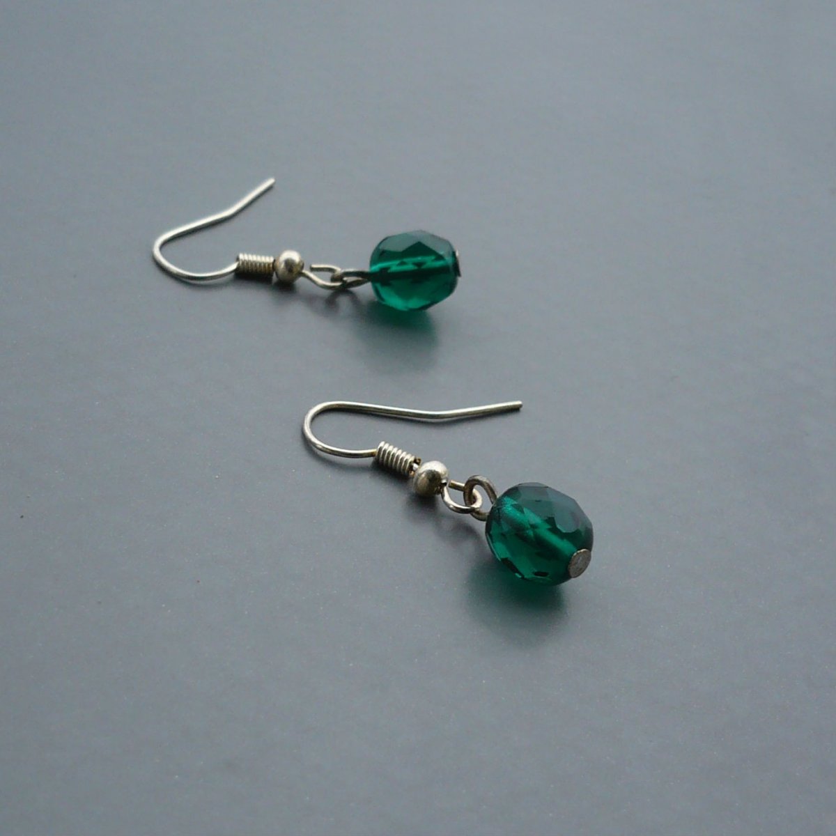 Jemné náušnice z broušeného skleněného korálku zelené barvy.