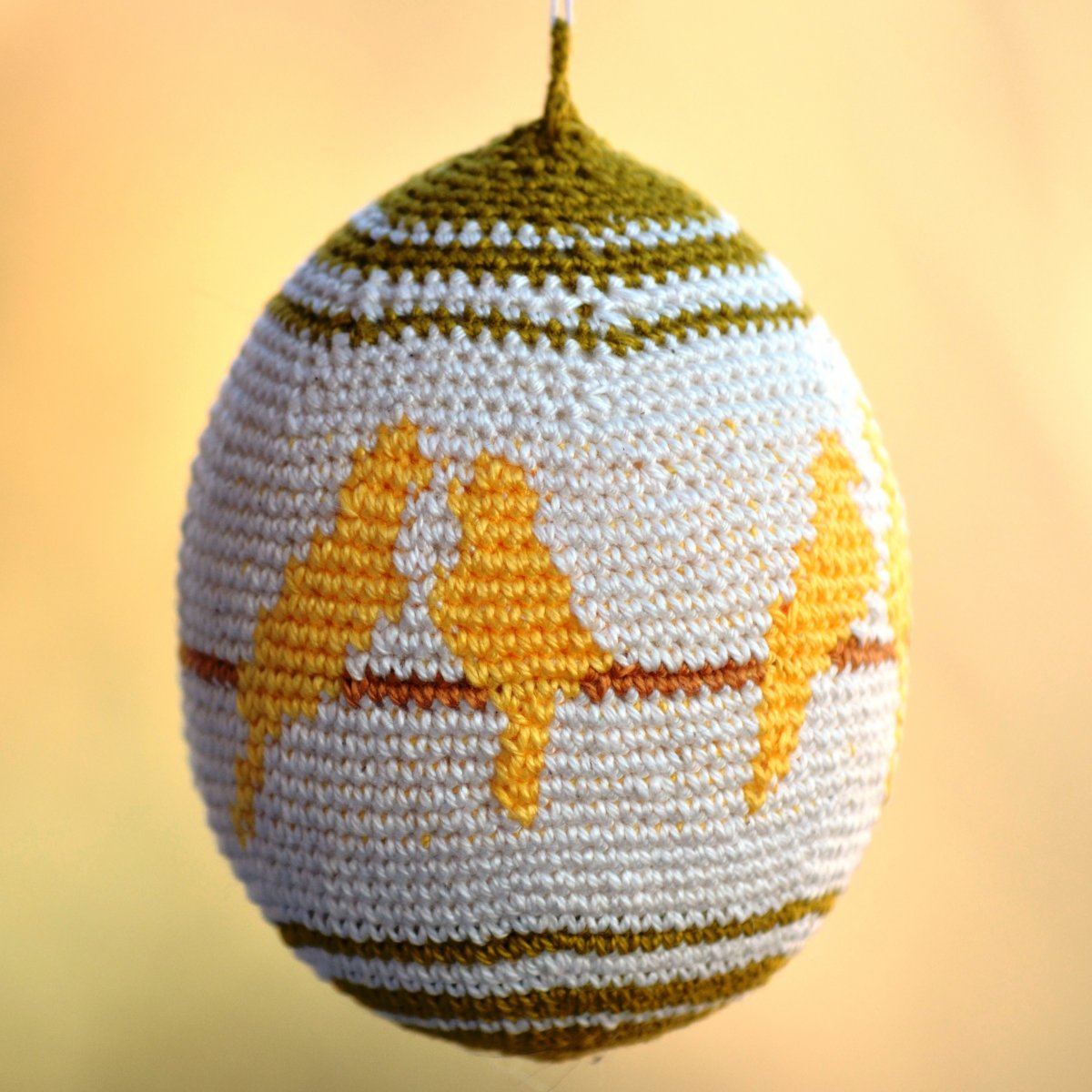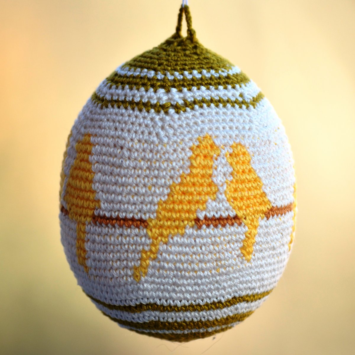 Háčkované velikonoční vejce s motivem ptáčků - příze Sněhurka na vatovém vejci. Velikost 8 cm.