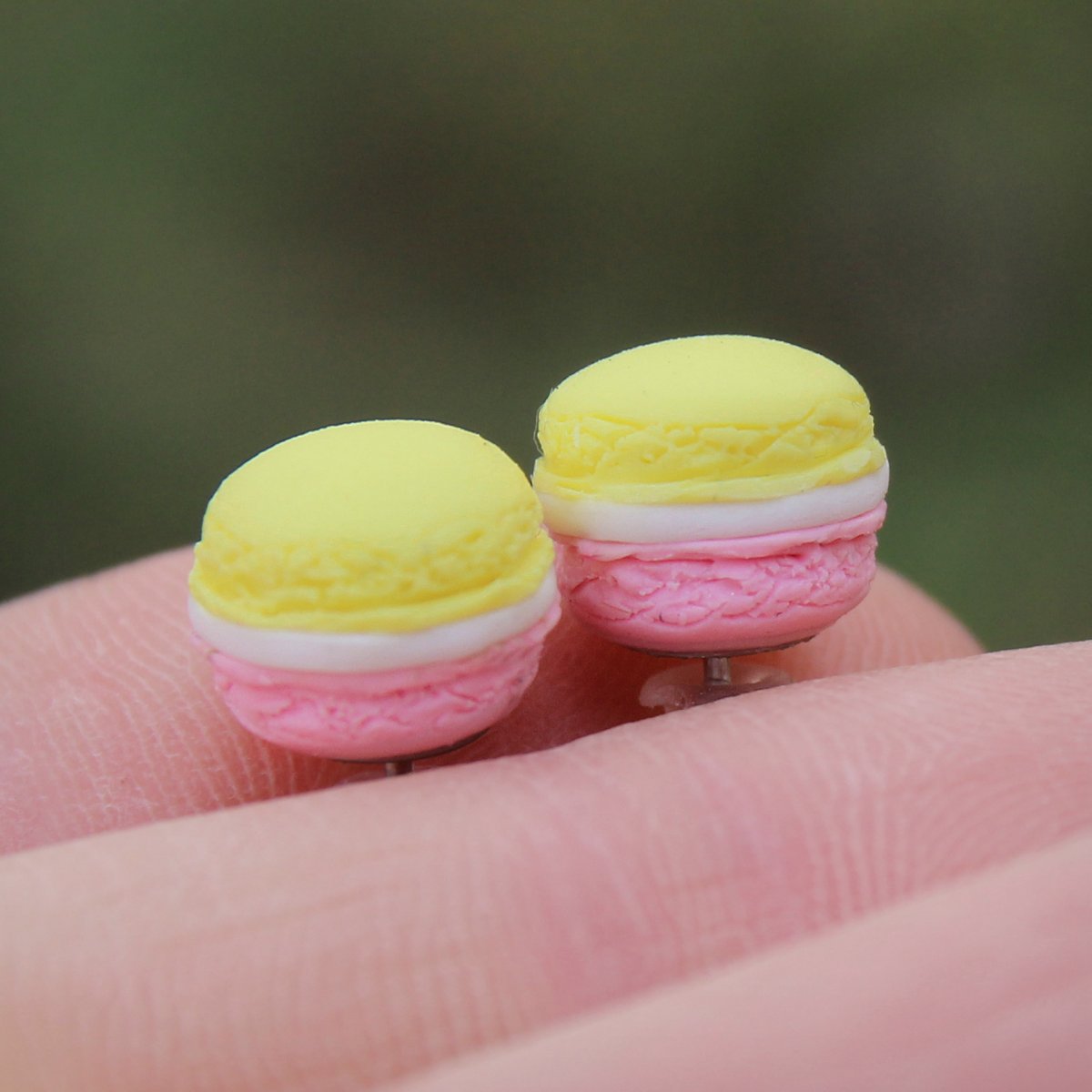 Náušnice s makronkami z polymerové hmoty, průměr 9mm, gumové zarážky.