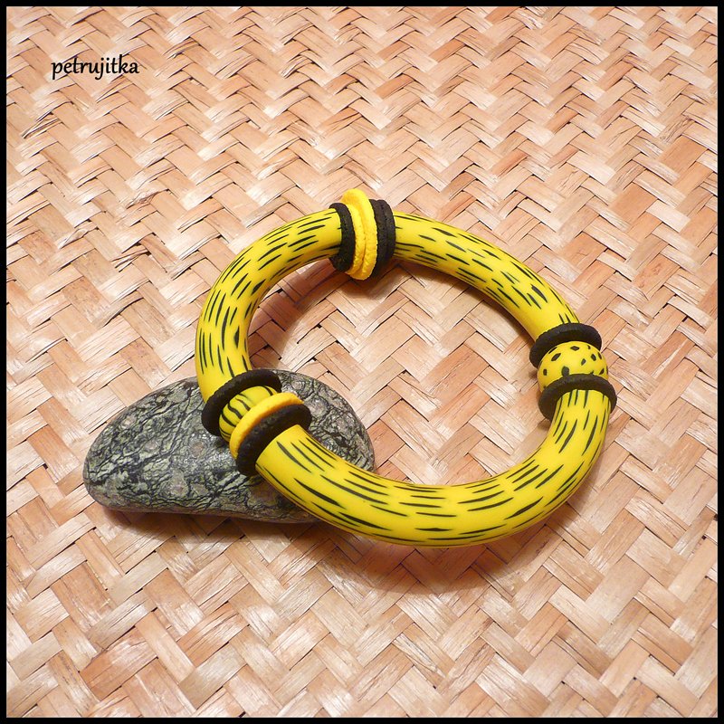 Originální náramek z polymerové hmoty. Barva je černá a žlutá.