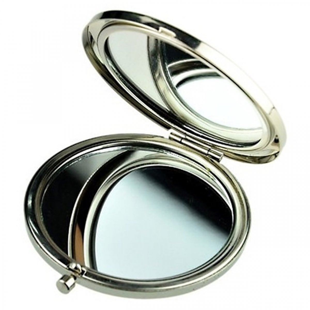 zrcátko - otevírací, průměr 70 mm, průměr motivu 57 mm, obsahuje 2 zrcátka - běžné a zvětšovací (kosmetické), barva platinová