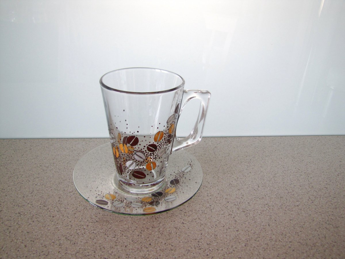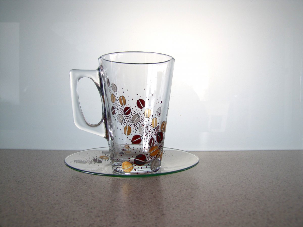 Ručně malovaný šálek s podšálkem - vypalovací barvy na sklo.
