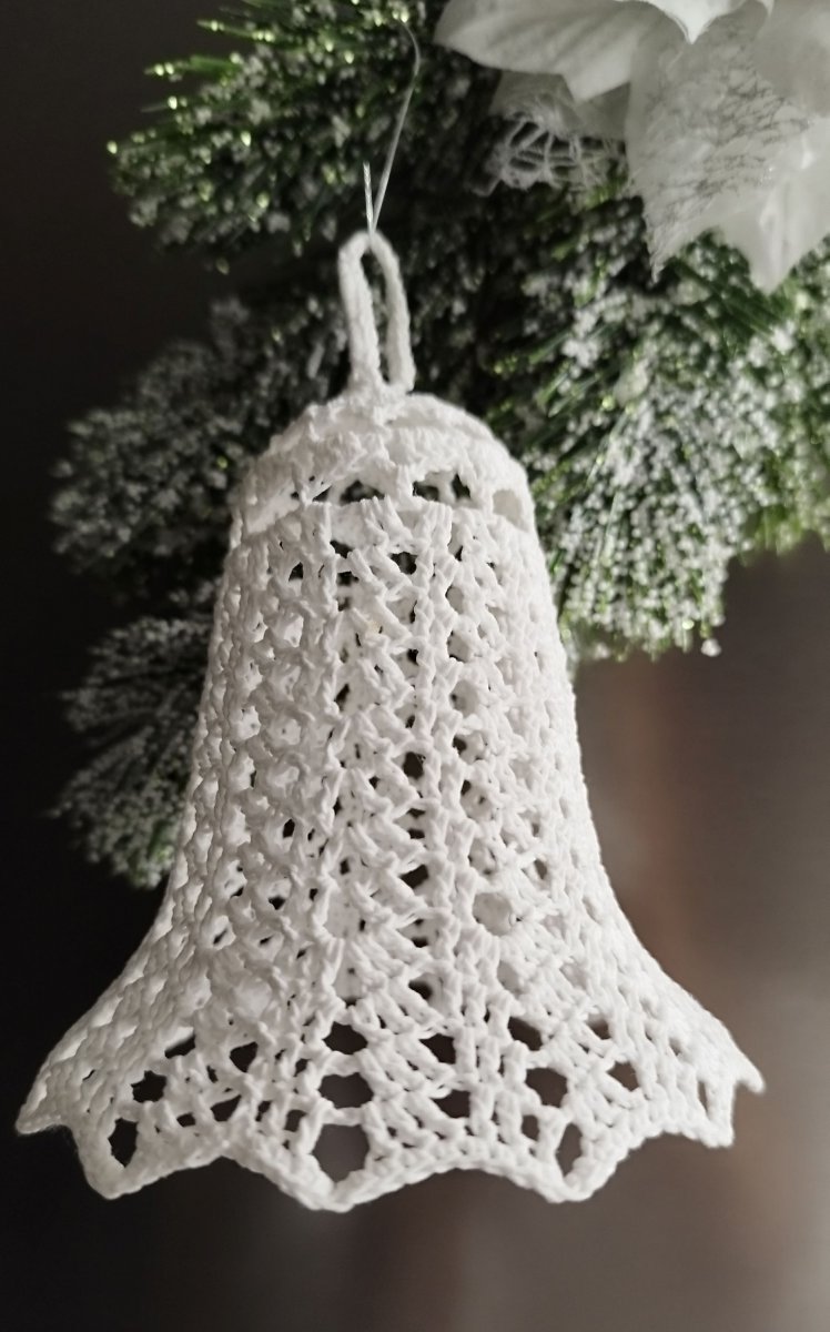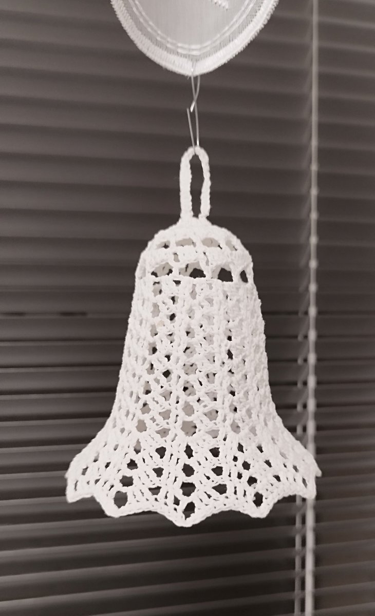 Háčkovaný zvonek z bílé příze, střední velikosti