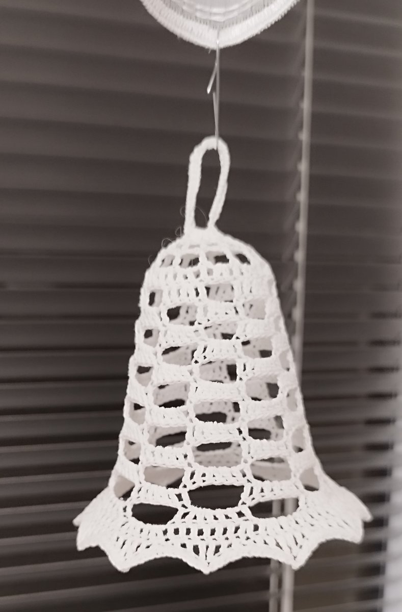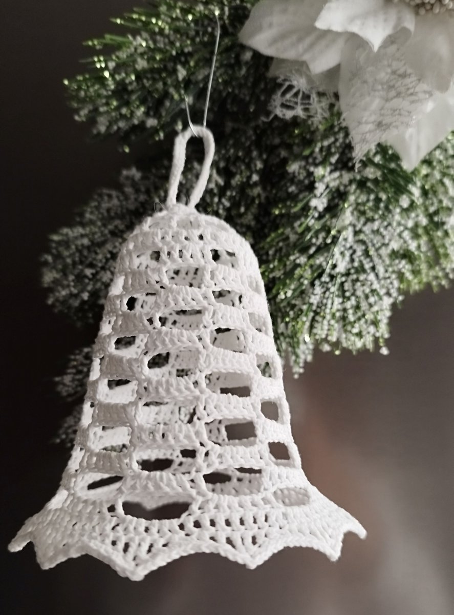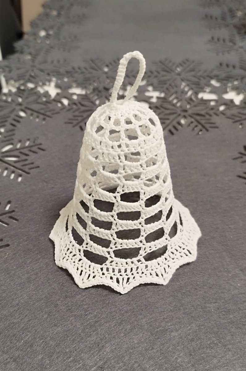 Háčkovaný zvonek z bílé příze, střední velikosti