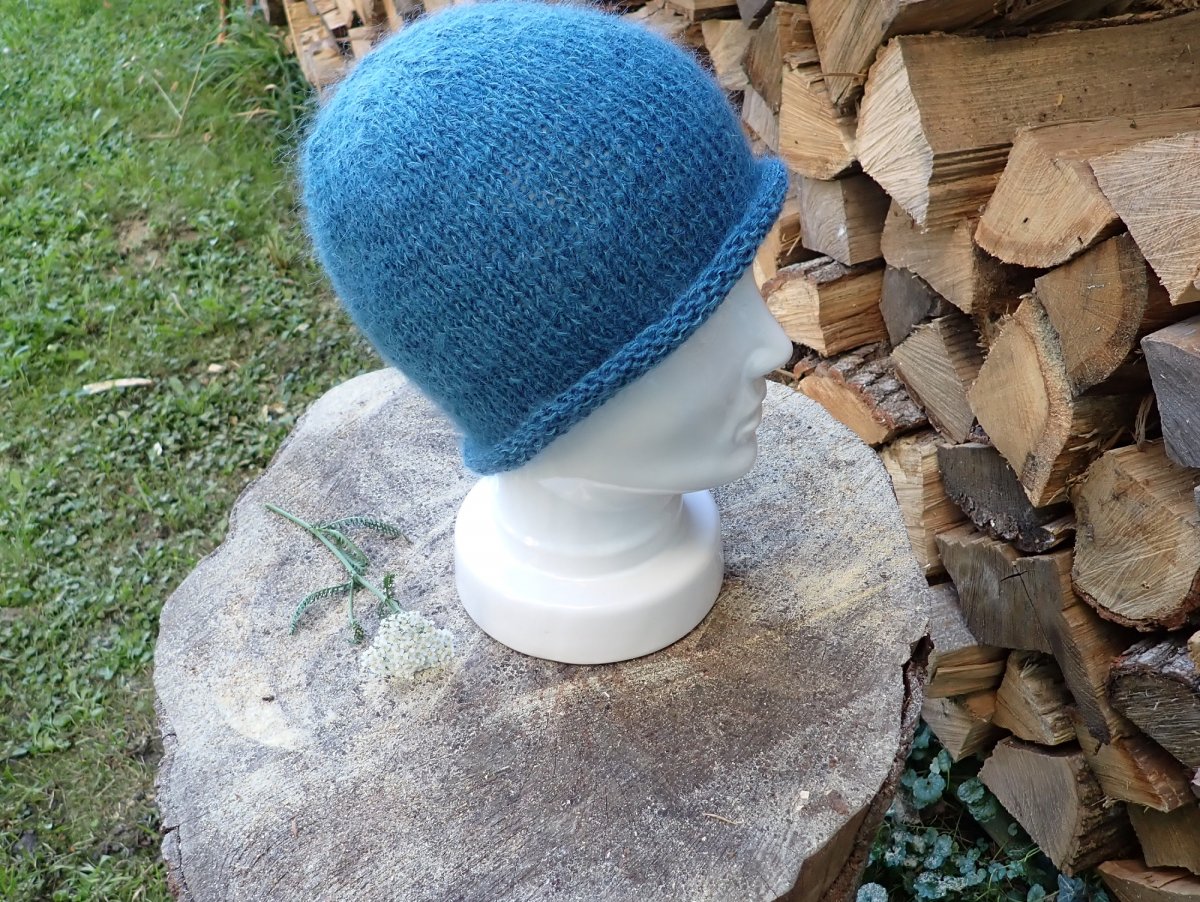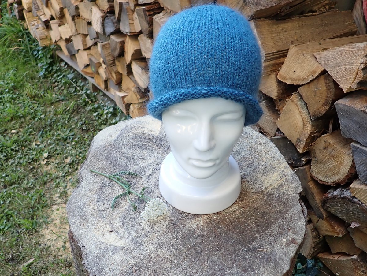Nadýchaná jednoduchá čepice je díky použitému materiálu lehounká jako pírko, ale přesto teplá.
