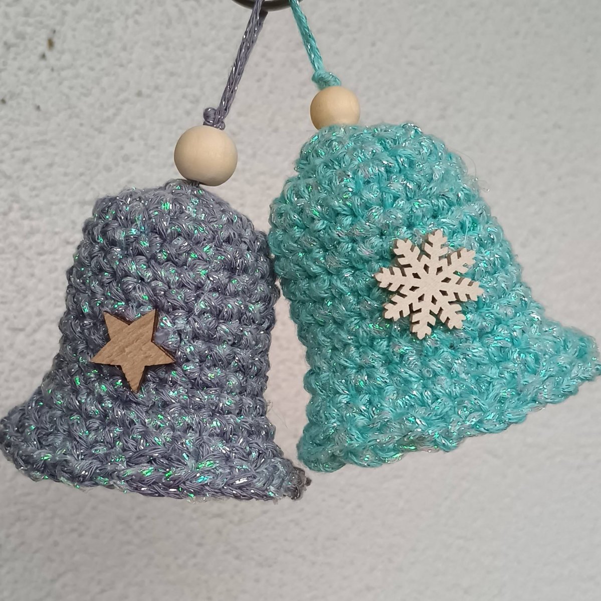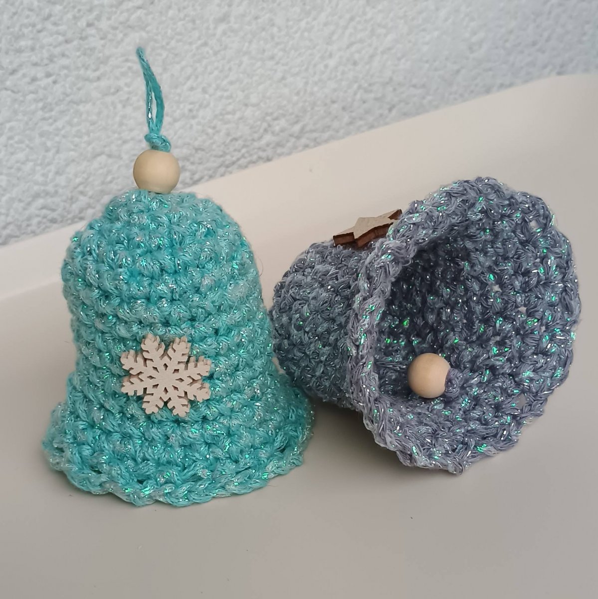 Háčkované z příze s leskem, měří 7 cm + 6 cm průměr.