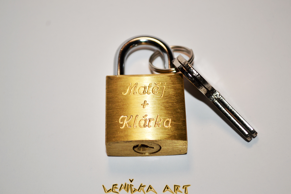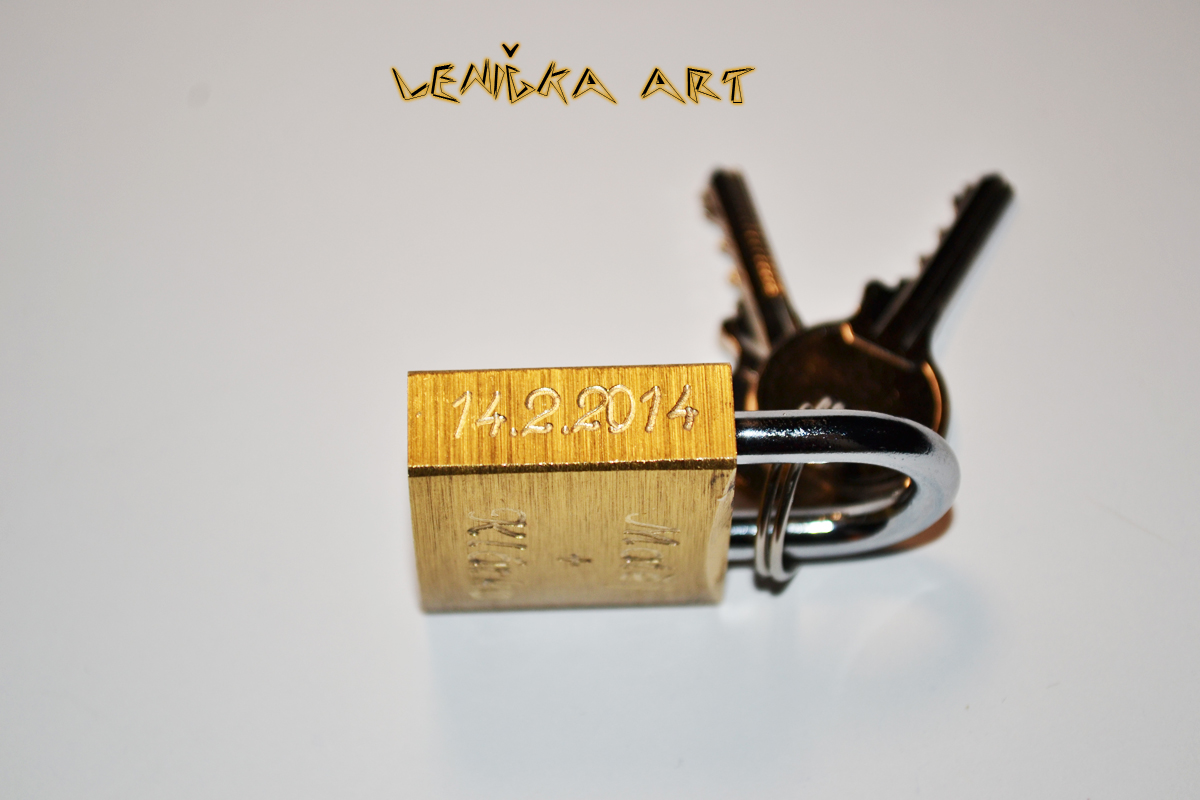 Dále nabízím možnost vyrytí jmen, či čehokoliv jiného, na zlaté zámečky :). Na hřbet zámečku vyryji třeba datum, třeba přání nebo malý obrázek :)