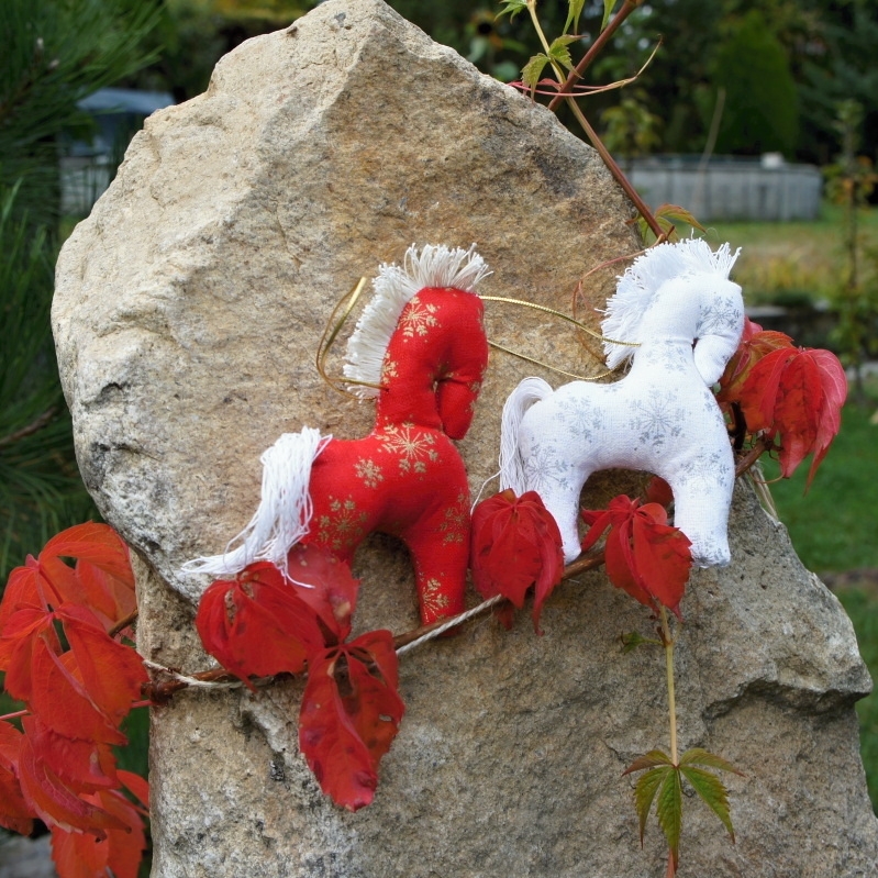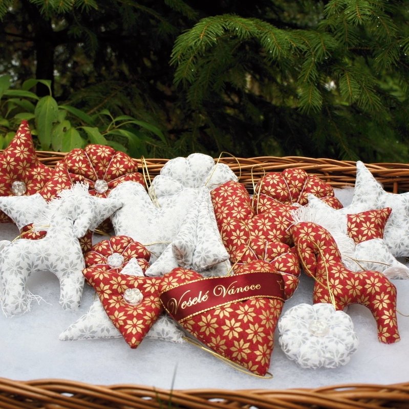 Originálním dárkem pro mladou rodinu jsou šité nerozbitné vánoční ozdoby, které se hodí jak na menší stromeček, tak na dekorační větev nebo na větve do vázy.